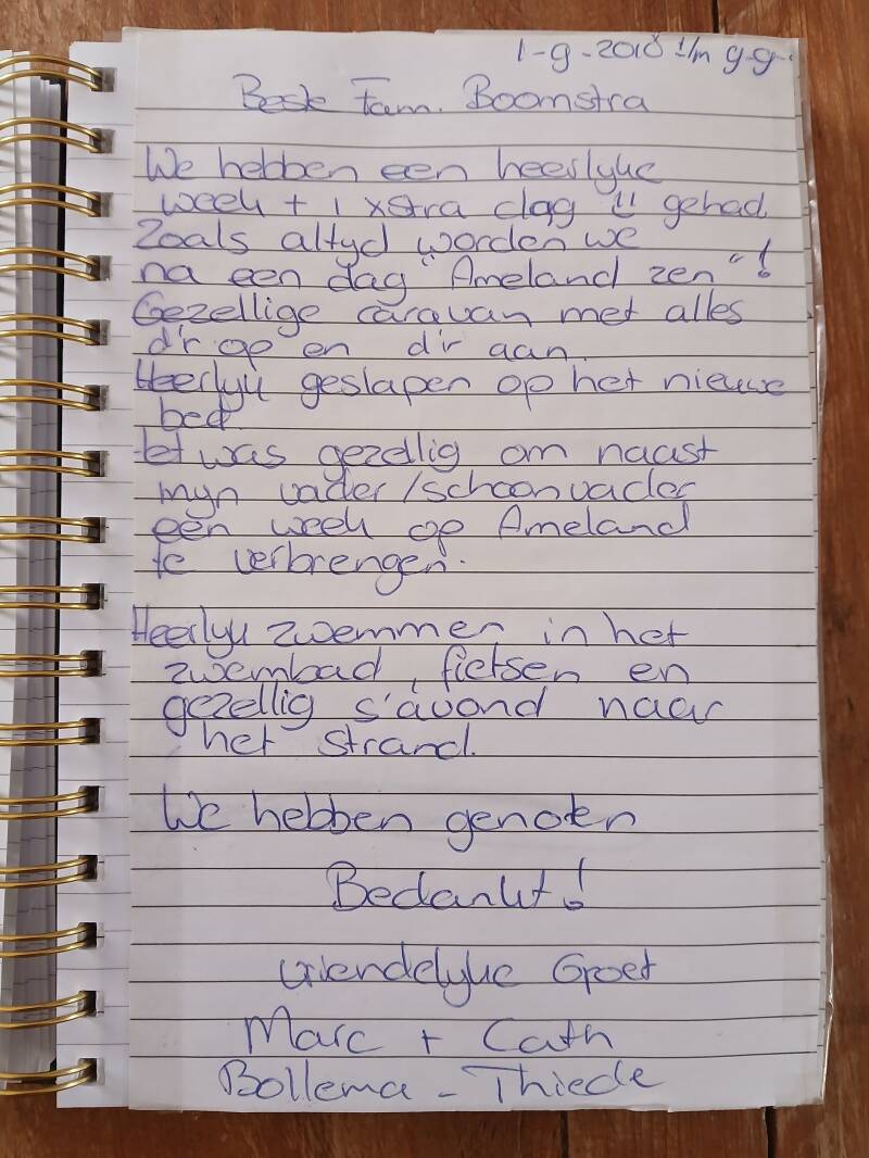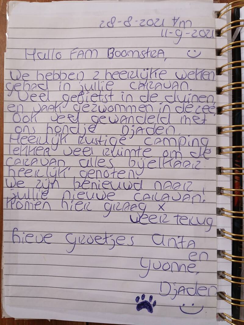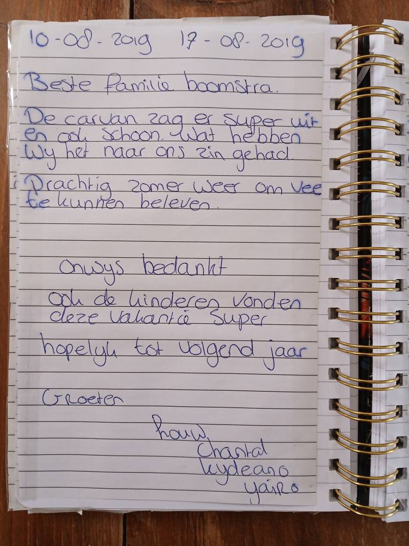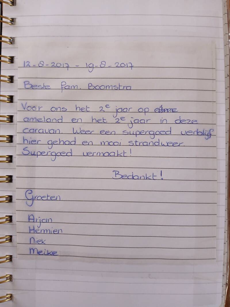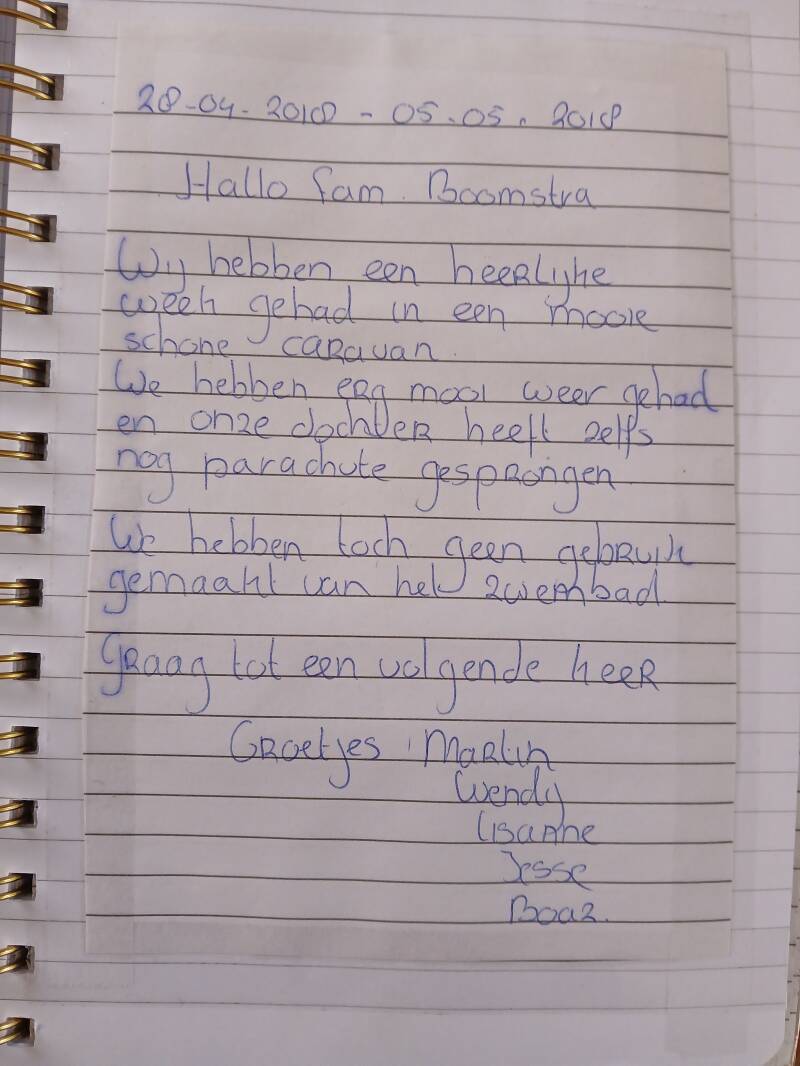 Onderstaande gastenboek is van onze oude caravan die wij hiervoor hadden