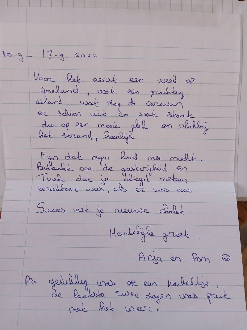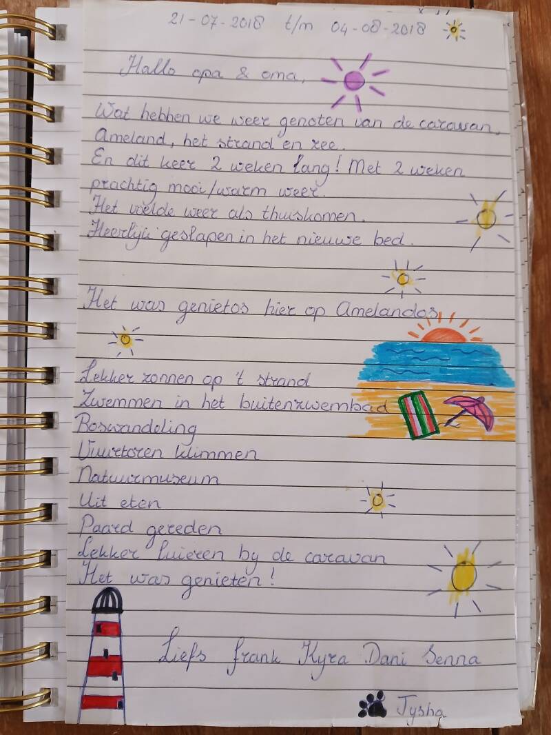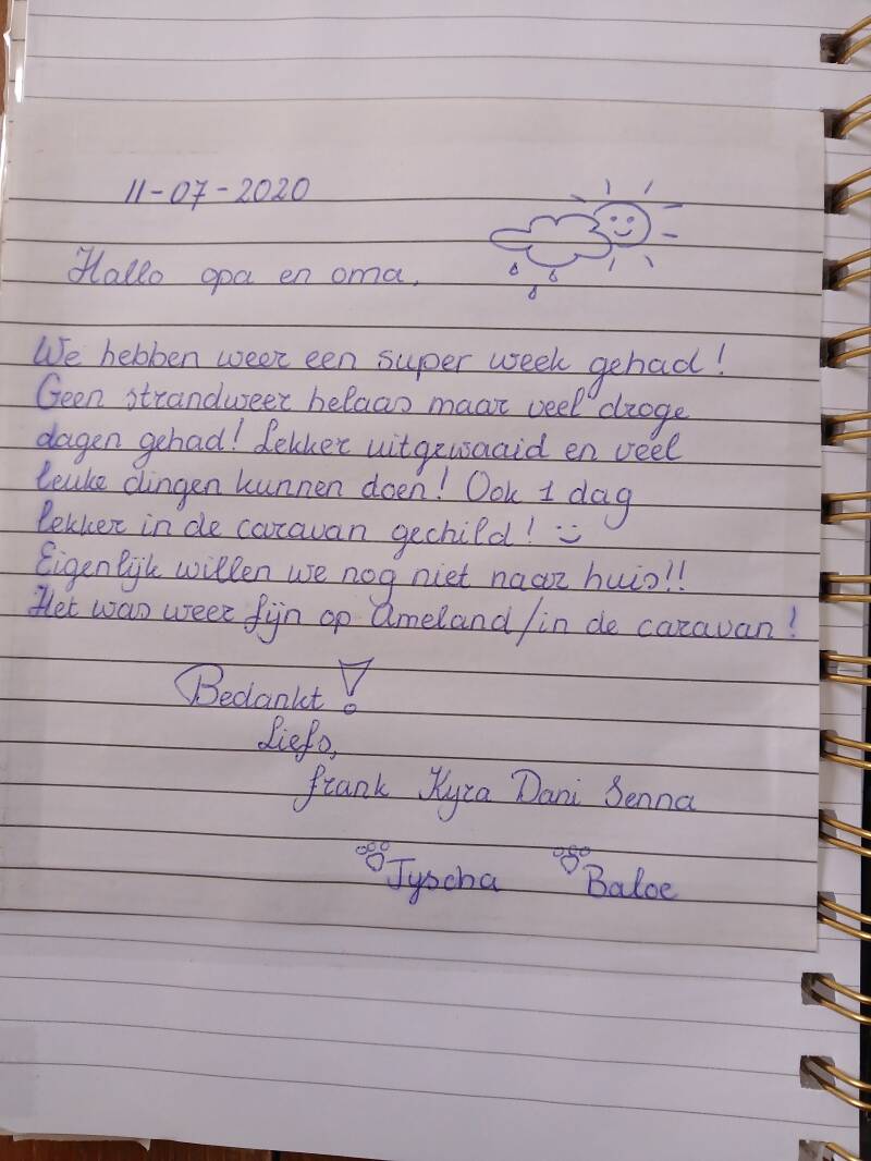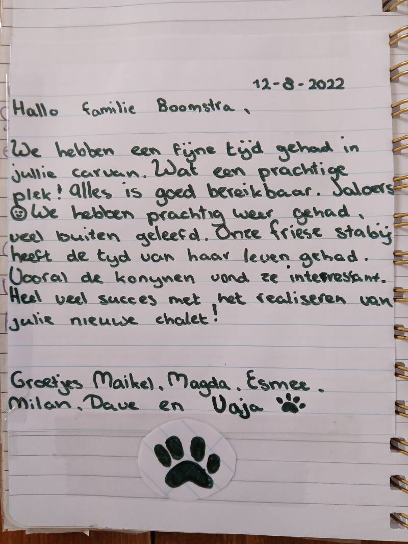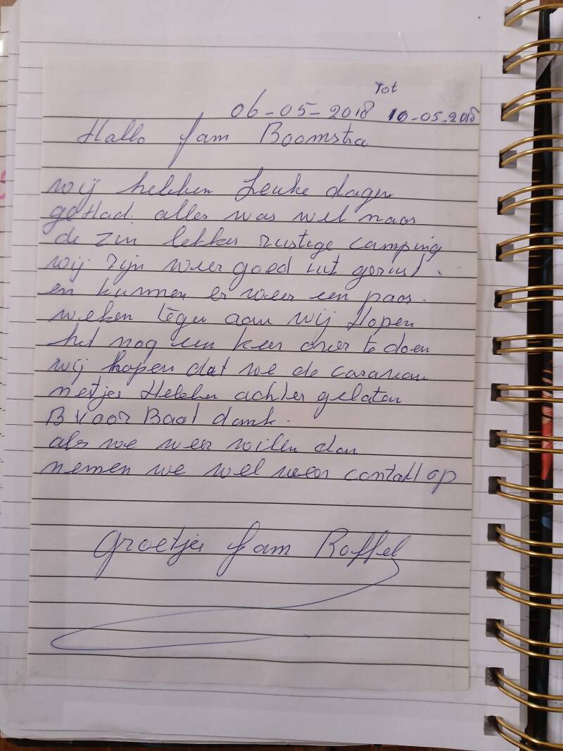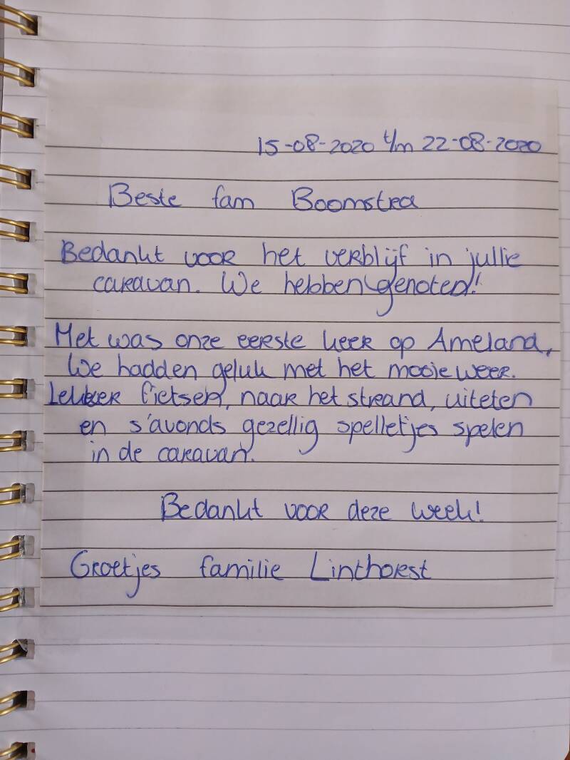 Onderstaande gastenboek is van onze oude caravan die wij hiervoor hadden